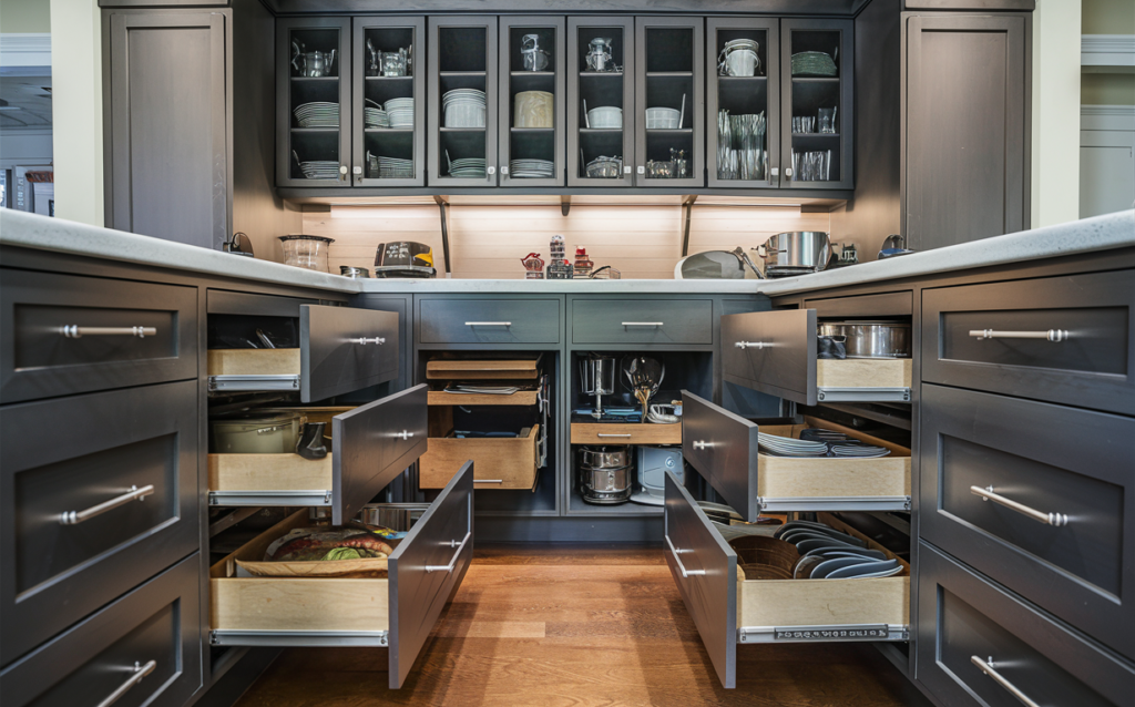 التركيب النهائي: ضبط المفصلات والإكسسوارات المعدنية والمقابض لتكامل بصري ووظيفي تام.